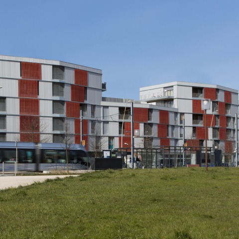 This interior space is in turn a direct response to the nearby park, Barricou, that accompanies the structural scheme of the metro line. The fragmented geometry of the apartment blocks, the grouping of units, and the organization of the different dwellings – whether organized collectively or coming individually or as duplexes – are all done with the intention of achieving diagonal views that connect these spaces to the garden areas around