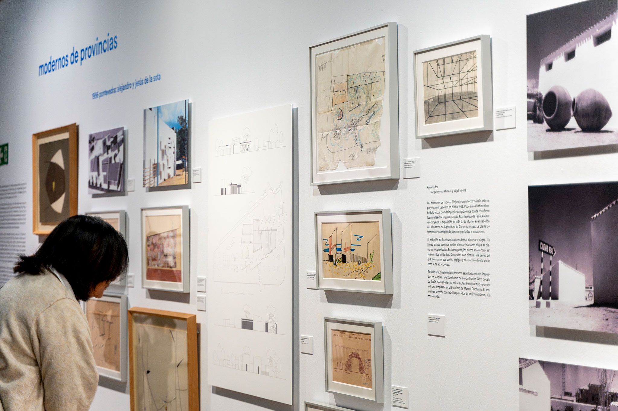 The exhibition explores the collaboration between architects and artists, responsible for the decorative arts of the pavilions, another of the fairs' great attractions. Prominent among them are painters Carlos Pascual de Lara, Antonio Rodríguez Valdivieso, Antonio Lago Rivera, Amadeo Gabino, Manuel Suárez-Pumariega Molezún, and Jesús de la Sota.