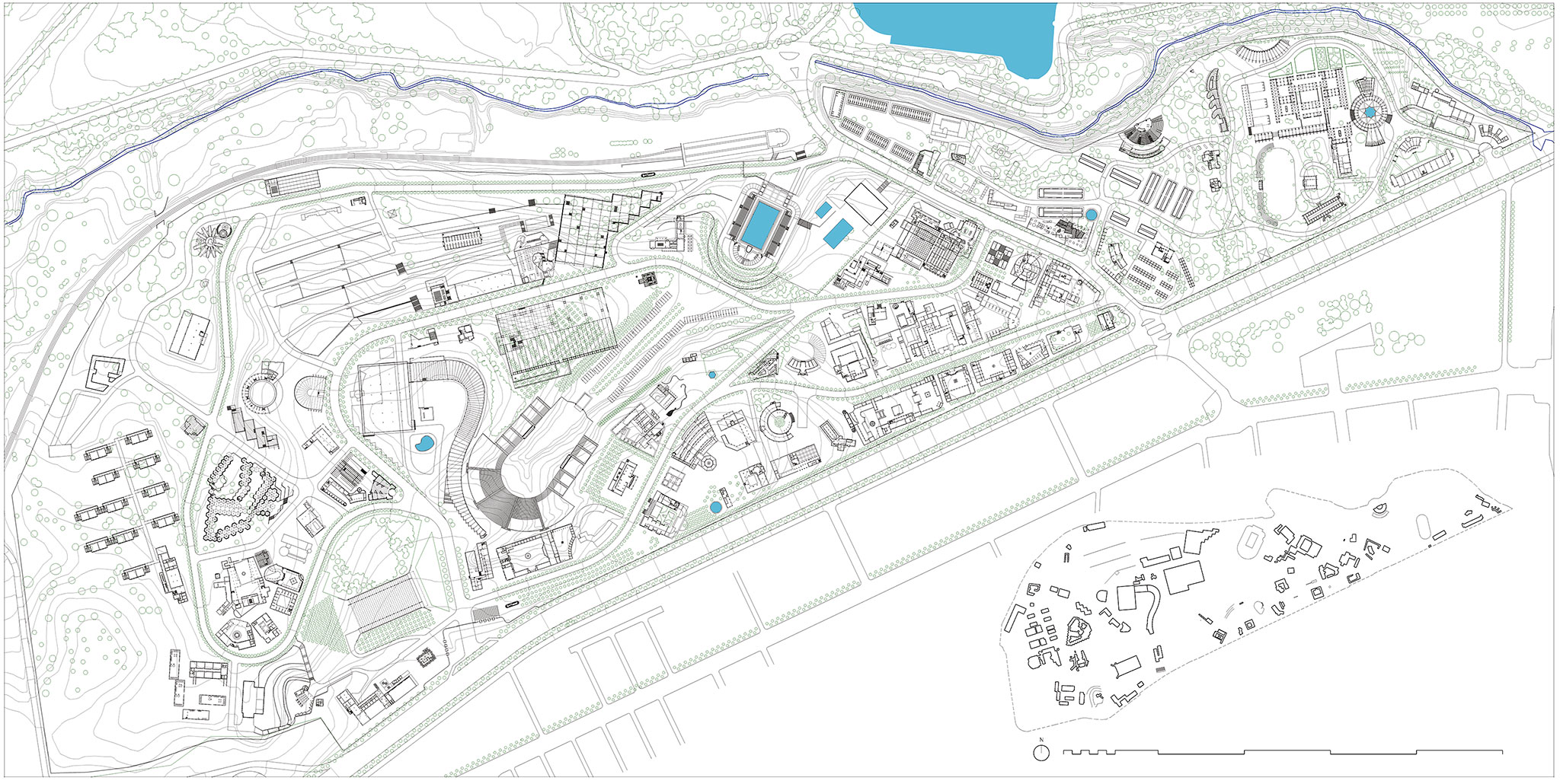 The site thus became a space for experimentation for some of the pioneers of modern architecture in Spain, such as Francisco de Asís Cabrero and Jaime Ruiz—designers of the site's layout and main pavilions—Miguel Fisac, Alejandro de la Sota, José Antonio Corrales, and Ramón Vázquez Molezún, among others.