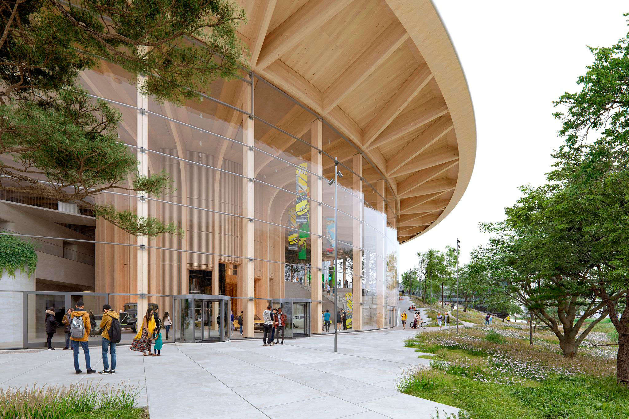 Visitors will step inside under Henning Larsen’s timber canopy for the first time on Sunday 14th April, coinciding with Volvo’s annual birthday celebrations.