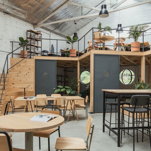 The dimensions of the intervention speak of a piece that is coupled to another in search of the minimum possible tension: A warehouse in the Manila neighborhood of Medellin, assembled in pieces according to when it was a mechanical workshop, an office or a clothing space; it is transformed with elementary operations to level, clear, ventilate and illuminate. The premise is to recover the essential industrial type of four double-height walls and a gable roof supported by 5 wooden trusses.