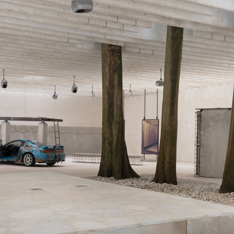 (*) The video was shot on location at a concrete factory in Helsinki, where the installation for the Venice exhibition was constructed using concrete, steel, and a sports car. In the video, we catch glimpses of the performance, featuring Teo Ala-Ruona, Kid Kokko, and Caroline Suinner. The video was produced by Cocoa and directed by Taito Kawata, whose previous work includes the Netflix series Dance Brothers.