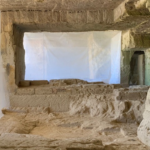 The discovered space has industrial logic as former Mares stone quarry, artistic potential as sublime cavern carved by hand, and mineral nature as extract of the stony landscape on the island of Menorca.