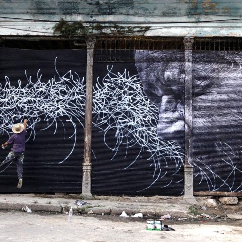 In 2008, he embarked on a long international trip for “Women Are Heroes”, in which he underlines the dignity of women who are often the targets of conflicts. That year he also created “The Wrinkles of the City” in Cartagena, Shanghai, Los Angeles, Havana, Berlin and Istanbul. In 2010, his film “Women Are Heroes” was presented at Cannes Film Festival. The same year, JR created “Unframed”, a project in which he uses images that are not his, and reframes them in a new context, on a larger scale.