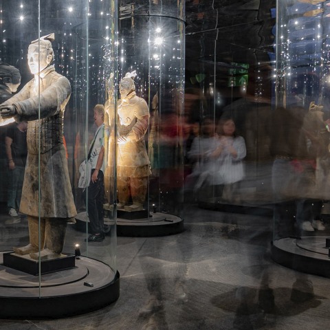 In the third room, which houses the Terracotta Warriors exhibition, the arrangement of the sculptures in cylindrical display cases is essential to create an immersive experience.