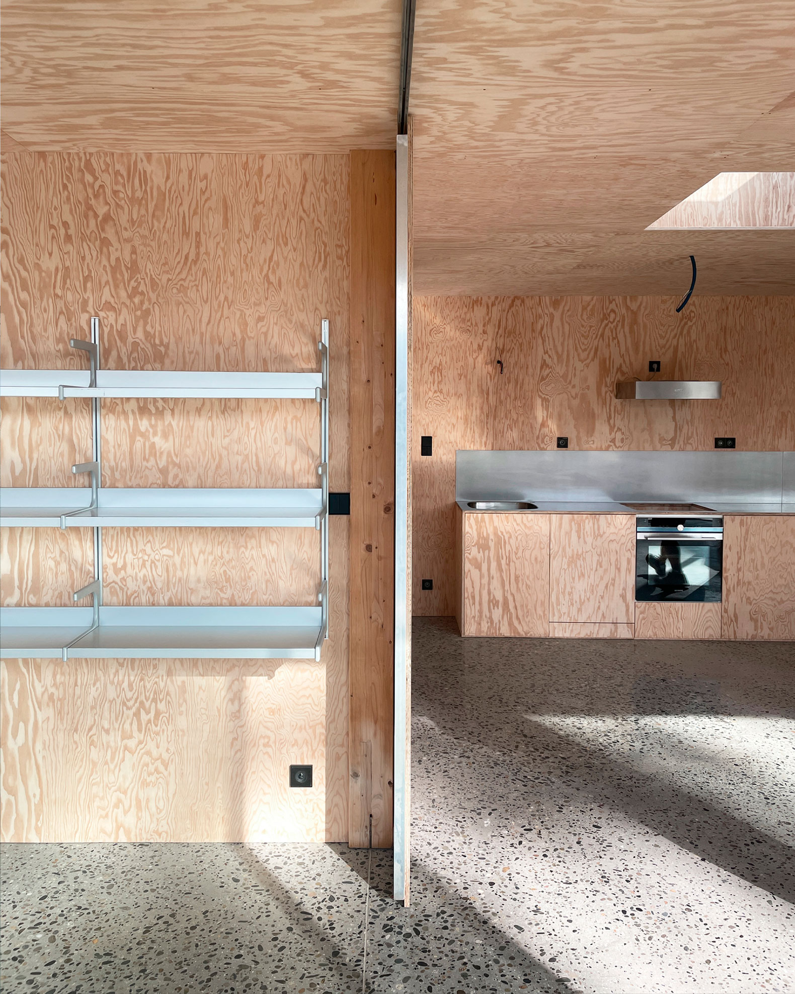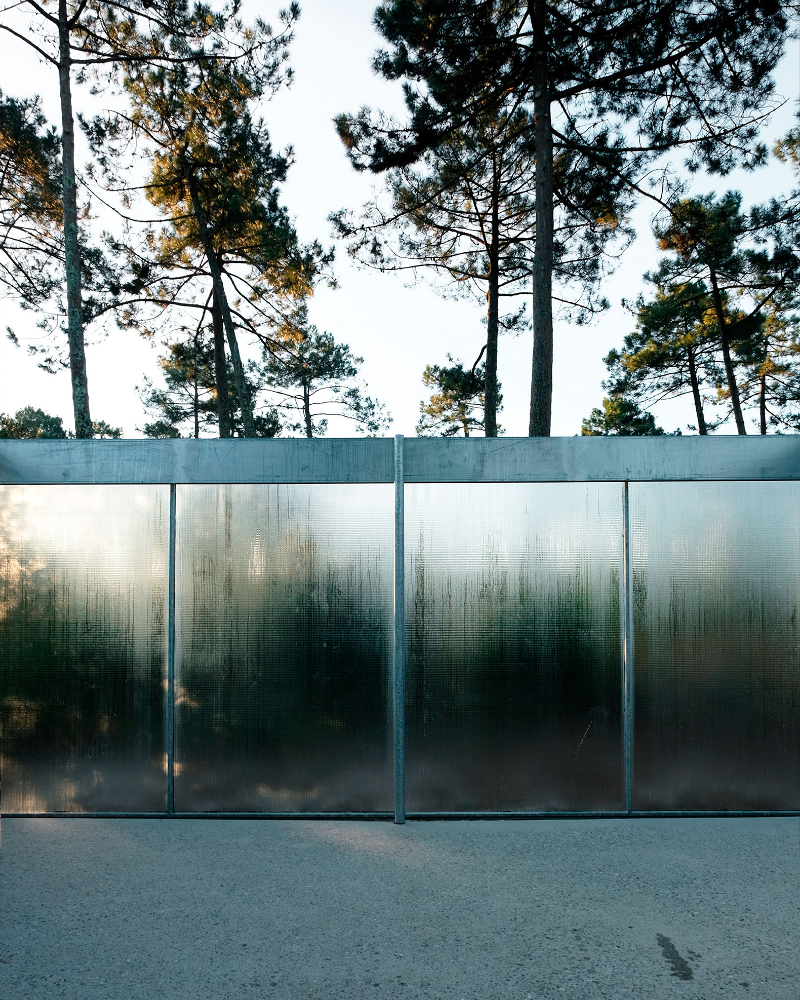 The compact design creates its own outdoor space within the built area. This courtyard separates the main house, inhabited year-round, from a guest house for family and friends. Two sliding doors of reinforced glass provide privacy.