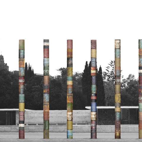 The winner refers to his columns as “sheet-steel drums, retrieved from chemical waste cemeteries, closely associated with today’s city and marked by recognisable signs, placed on top of each other and simply welded them together. They are new column tambours. They are also objets d’art, because time has undertaken to strip them of their paint and disfigure them, to de-activate their functionalism, thereby obtaining inimitable effects on their surfaces and in their dents. (…) The multicoloured row of columns made of cast-away industrial drums also establishes an ironical relationship between the threats of the industrial landscape and the ambiguous, misguided beauty it reveals. Perhaps this would have pleased Mies, who once said: I don’t want to change the world. I only want to express it”.