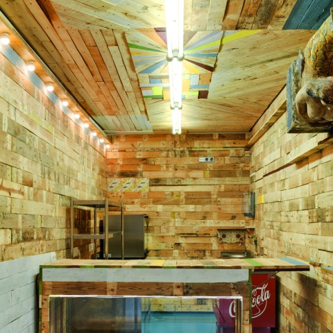 The spanish practiceMartín Lejarraga arquitectos designs a project leaning on wooden pallets recycled and disassembled, collaborating with friends like the artist Angel Charris and taking references from the port. A proposal awarded Best of Year 2014 Award in HOSPITALITY: Counter Service.