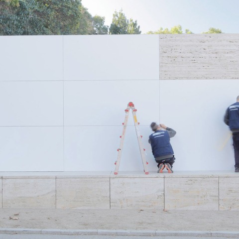 Turning the Pavilion into a mock-up, with all the surfaces restricted to the same material, as white as it is indeterminate, reveals the building’s representative role—both that of the original, as a national symbol, and that of the replica, by representing the former. For a time, the Pavilion will be the longest-standing 1:1 scale mock-up of the replica of the temporary pavilion in modern architecture.
