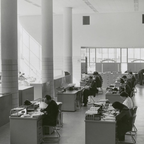 Willem Dudok's De Nederlanden van 1845 building was a direct consequence of the effects of WWII on Rotterdam. The former headquarters of the insurance company, of the influential architect H.P. Berlage, had been among those affected by the bombing and, although it remained standing, the serious damage to its structure and the loss of almost all its enclosures led the company to make the decision to demolish it in 1960.