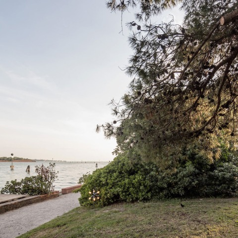 Once there, one is confronted with the same end that the lineal walk was leading to. The difference is that the Morning Chapel builds another perspective and a meeting place. Its open condition welcomes all kinds of visitors this side of Venice, not imposing a precise meeting position but allowing a variation of encounters. Sitting in this place there is a double focus of attention: one towards the edge of the island and the lagoon; the other at the casual nature of people meeting around, all having arrived there due to magnetism of the Venice Biennale, sharing a common curiosity, a coincidence to be celebrated.