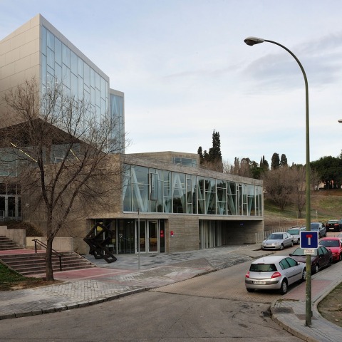 The library is built in a wonderful plot in a inner limit of the city, on the cornice formed by the graveyards of San Isidro and Sta. María close to the Manzanares river. The plot has a steep slope north oriented without building obstruction in this direction, so we have a wonderful view of Madrid's skyline from the historic centre to the mountains. The place is who is taking the master decisions about geometry and how is open and is connected to the exterior. This is a functional building, transparent, the library activity is seen from the street and the readers can take part of the city, It has a short material palette and shows directly how everything is built, facilities tracing is always seen. The romantic idea of the library is represented by the main reading room wide open to the landscape.