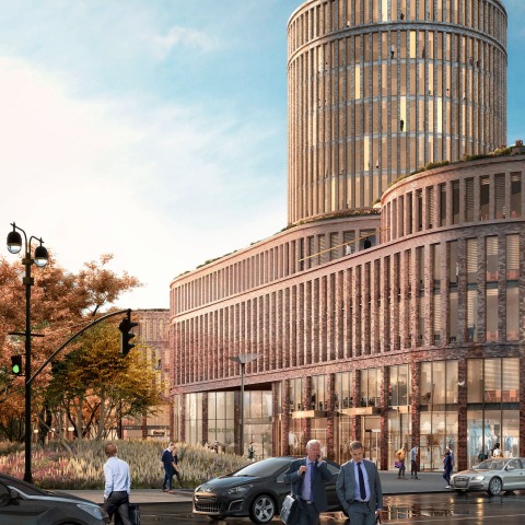 Fabryczna offices is a grand addition to the existing city centre of Łódź and fits well with the entire masterplan for the areas around the new station. It connects past to present, with the design ambition for a distinct envelope given the strict instructions for a 4-storey plinth, respecting the outline of the plot and at the same time, allowing for a tower height of up to 60 meters. The depth of the plot encouraged the creation of a publicly accessible courtyard.
