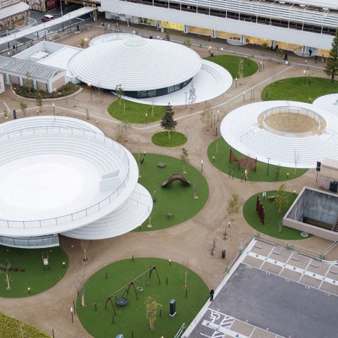 The plaza’s name, CoFuFun, combines the main design motif, the cofun, with colloquial Japanese expressions. “Fufun” refers to happy, unconscious humming: the design for the plaza should offer a convivial atmosphere that unconsciously leads visitors to hum, happily, while they’re there.