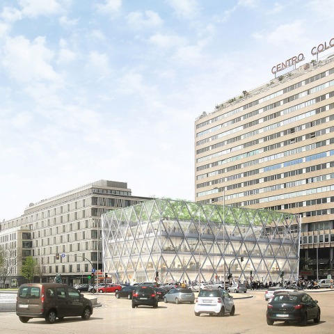 Responding to Madrid’s Mediterranean climate, the building features a soaring atrium that connects the retail at the base with the offices above, pulling the natural greenery deep into the building. The building is crowned by a sky terrace – full of greenery, light and life – for informal meetings and gatherings against the backdrop of the Plaza de Colón. An innovative screen made from catenary structures, planted with natural vegetation creates distinctive open-air rooftop experience – a rarity in Madrid.