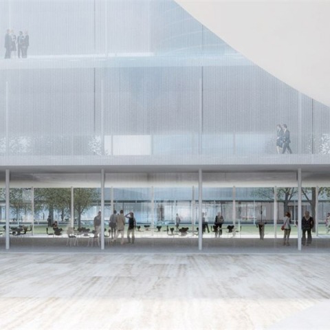 The entrance to the new Bocconi School of Management opens on the north side of the plot, which facilitates entry to existing Campus. The building contains an entrance lobby with a transparent double height, with areas on the upper level and a large auditorium at the bottom. From the entrance, through the building, you can access the system courtyards of the complex, which houses the cafeteria on the ground floor of the administration building and the store is on the same level Master Building Program.