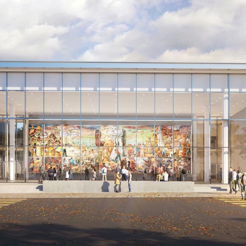 Diego Rivera’s inspiring Pan American Unity Mural is the centerpiece of the building, where it will finally reside after its tumultuous 70-year history. Originally painted on Treasure Island for the Golden Gate International Exposition in 1940, the mural has not been widely viewed by the public until being recently displayed at the San Francisco Museum of Modern Art. The Theater’s mural lobby, which will house the artwork, has been designed to display the art to both the building’s users as well as pedestrians outside. The lobby is wrapped in a glass wall, showcasing the mural, and allowing passers-by to be drawn in by the presence of this historical work of art. The Diego Rivera Theater is an open and welcoming building that integrates into the existing circulation patterns of the campus and facilitates a pathway between the adjacent STEAM and MUB Buildings.