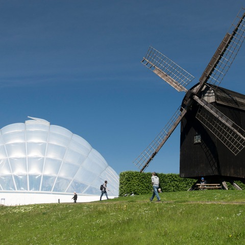 Using advanced calculations, the architects and engineers have optimised their way to the building's structure, ensuring that its form and energy consumption interact in the best possible manner and make optimal use of sunlight. The domed shape and the building's orientation in relation to the points of the compass have been chosen because this precise format gives the smallest surface area coupled with the largest volume, as well as the best possible sunlight incidence in winter, and the least possible in summer.