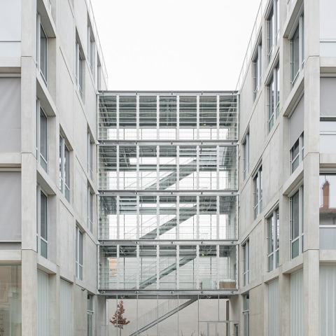 The project is structured in three volumes with a minimal core, integrating external walkways that create a visual rhythm around the courtyards, opening lines of sight in the heart of the block and improving accessibility and circulation.