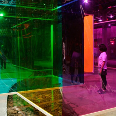 Teatro de SESC Pompeia, 2011. The artist presents eleven installations, eight of which were especially created for São Paulo. Devised by Olafur Eliasson as a response to the city of São Paulo by invitation of the 17th Festival, Seu corpo da obra is a show featuring eleven installations and one work made in collaboration. The artworks entice the audience to experiment with their own perceptions of color, spatial orientation, and other modes of involvement with reality.