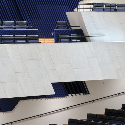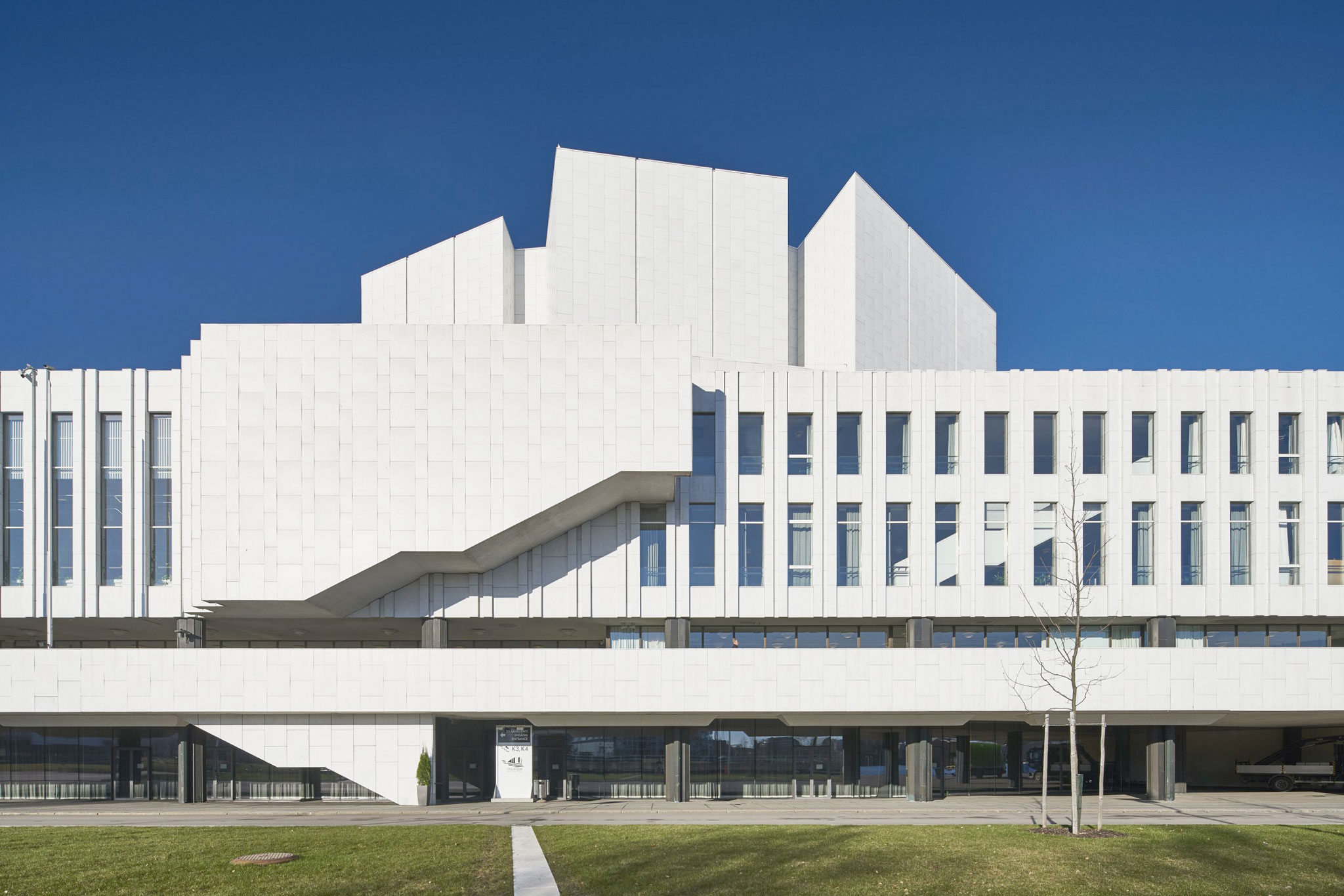 Alvar Aalto's Finlandia Hall renovated by Arkkitehdit NRT. Photograph by Tuomas Uusheimo.