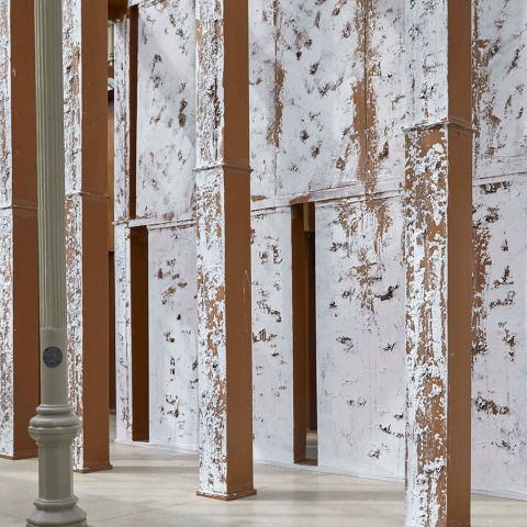 Among other advantages, the system of construction with prefabricated elements allowed the building to be put together and dismantled very quickly, which suited the intrinsically ephemeral nature of events like the World Expositions, greatly in vogue at that time. In the same way, Carlos Bunga has built his ephemeral interior architecture taking into account the climatic and conservation conditions that are so particular to the Palace, which may affect the installation itself and which will be dismantled when its exhibition is over, as was the case with the pavilions of the events mentioned above.
