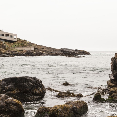 This building grows on the topography using concrete as its primary material and features a distinctive exterior facade where wall was purposely punctured by different sized rectangular and square openings, frame the adjacent bay and landscape and generating an ambiguous space between this element and a second facade.