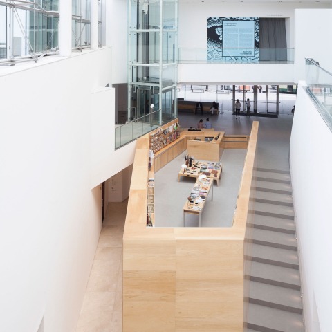 This aesthetic and constructive code extends to the counters of receipt and sale of tickets, the shelves and exhibitors of the store or the large tables run of the cafeteria, but also to other smaller pieces such as benches, stools, chairs or stools that make up a series of furniture studioSerreros for MALBA that introduce a domestic character in the space between the city and the exhibition halls.