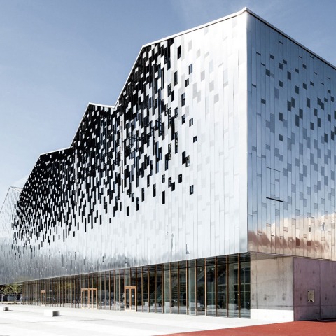 El edificio tiene su génesis en la morfología arquetípica de los almacenes de ladrillo que poblaban los muelles vecinos. Este paisaje urbano, almenado con tejados a dos aguas, está innegablemente ligado al patrimonio de Le Havre hasta el punto de convertirlo en un vector familiar de bienestar. El proyecto reproduce su perfil para perpetuar su símbolo casi melancólico, el de una época floreciente y pacífica. También rinde homenaje a la belleza sencilla de sus grandes volúmenes capaces, atribuyendo su eficacia a los espacios deportivos.