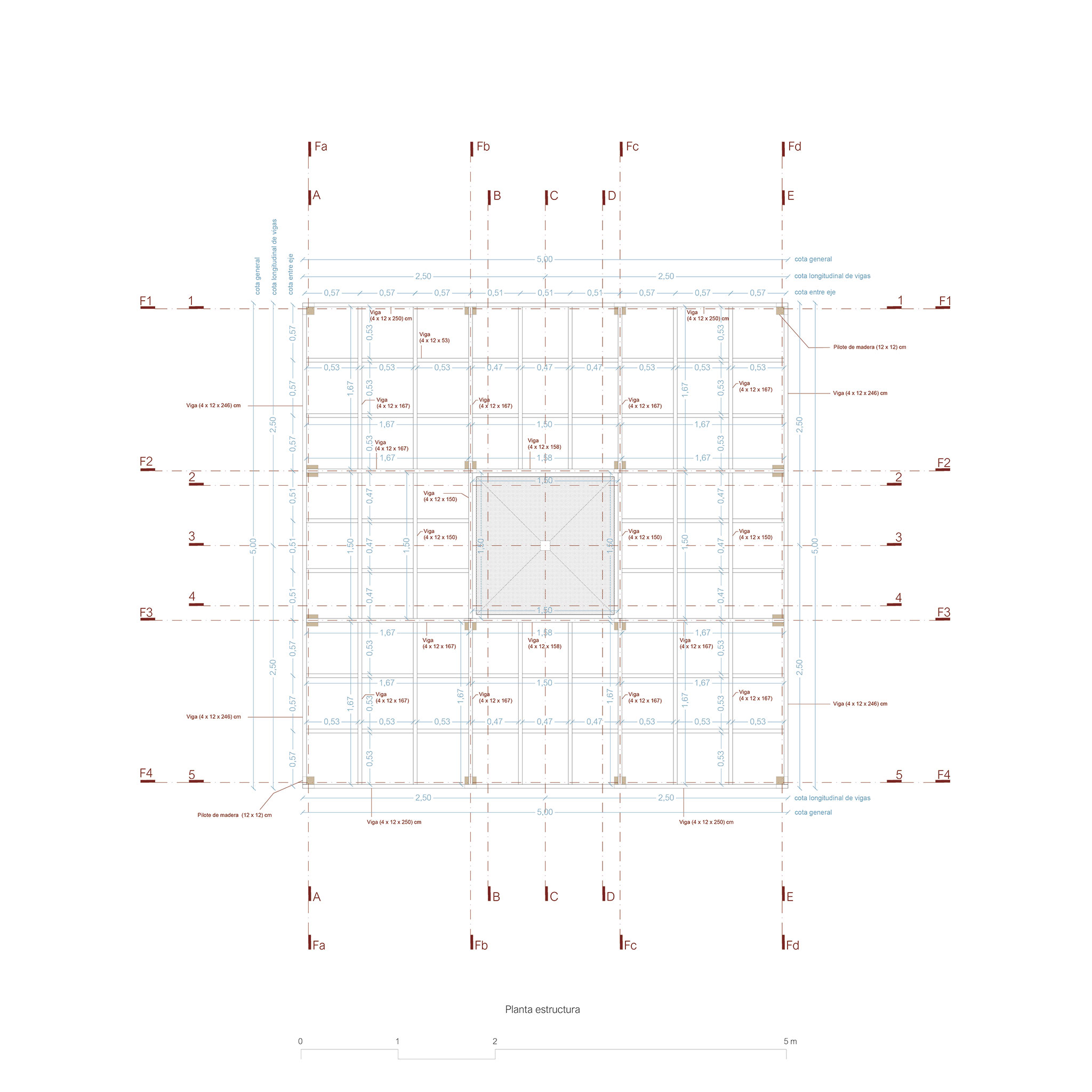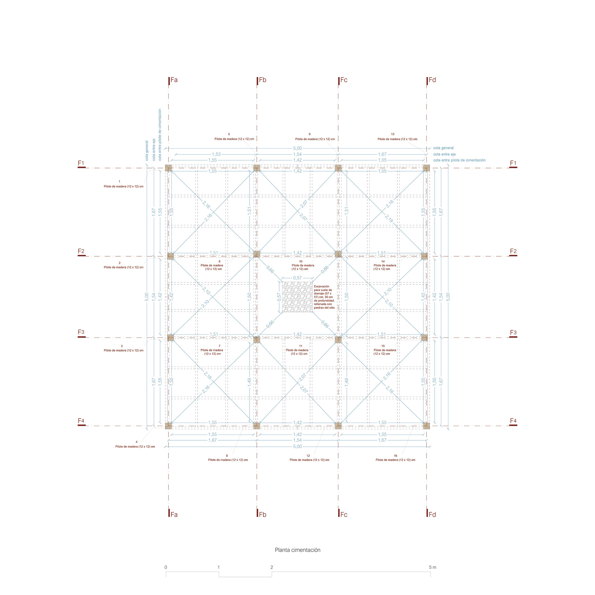 A fundamental objective is thus defined: to construct an architectural experience from within the space, through which we become aware of the presence of water in the forest, thereby sublimating its very material condition. In this way, the paradox lies in the fact that what is sought is not protection from the water, but rather, to build a refuge for it. This is where the principle of material allegory we seek is based, and where architecture is simply transformed into the necessary support for the experience to occur.