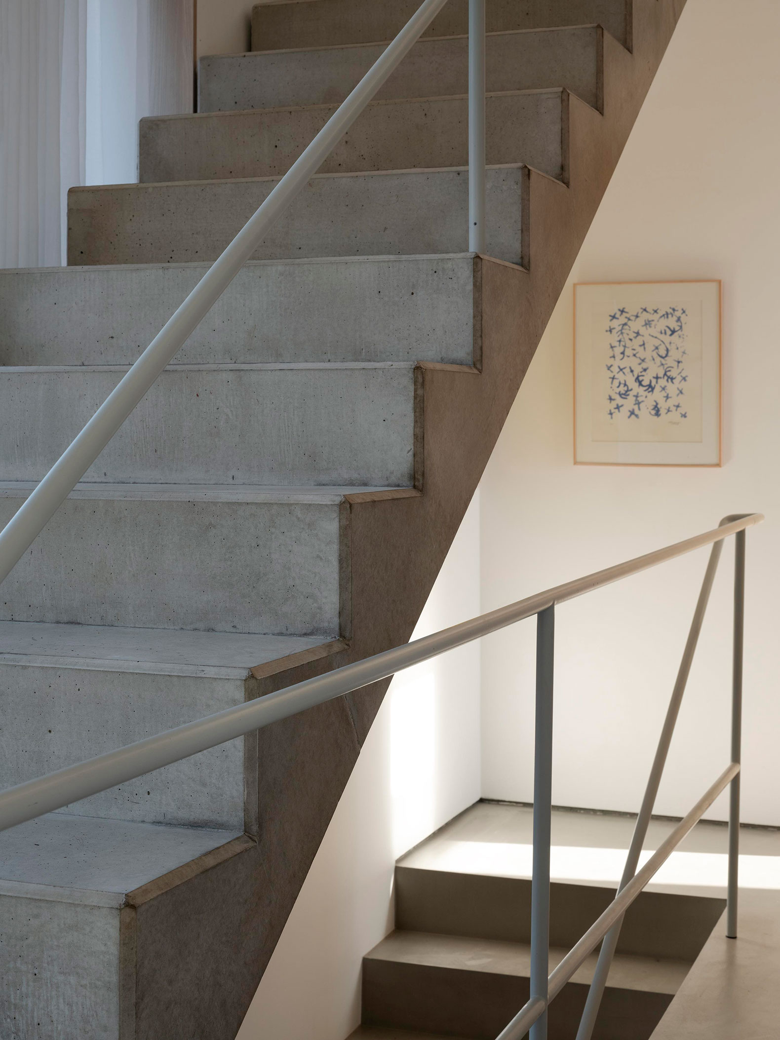 The design draws from personal encounters with influential buildings within architectural discourse. Villa Barbaro by Andrea Palladio inspired the disciplined symmetry of the house, while the Eames House/Studio influenced the concept of a unifying atrium and spatial duality. Thomas Jefferson’s University of Virginia campus influenced the relationship to the terrain and the classical rhythm of the façades. The LA Case Study Houses provided reference points in tems of construction techniques methods and dynamic relationship with the urban landscape, particularly panoramic vistas toward the city.