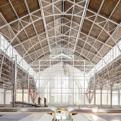 We conserve and repair the beautiful structure that supports that roof. Beneath, we dig into the site to introduce new services that complement sales activity: logistics, parking, installations.