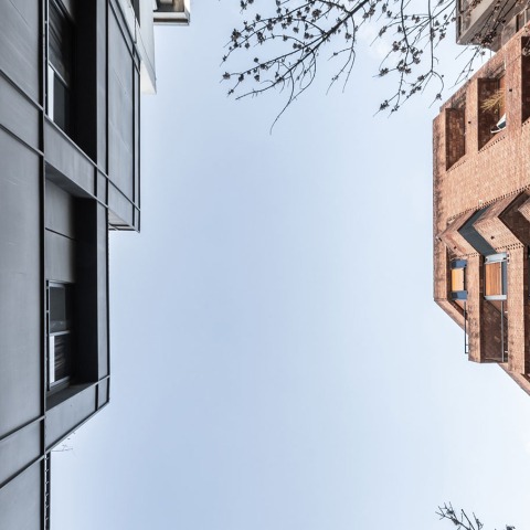The resolution of its facade expresses a clear reminiscence with the original building, replicating the plinth on which the main metal envelope sits, linking the new with the old through metal. The staggering of the volumes acts as a bridge between the different heights present in the adjacent buildings, generating new morphologies where previously there were only vertical party walls.