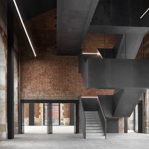 Inside, loading walls are cut down on the ground floor to achieve a fluid space and to get visual continuity between the different bodies. At the same time, the mezzanine slab, which was executed with little fortune in the middle of the twentieth century fragmenting the original height of the ground floor space, is completely eliminated. This level is only partially recovered at the access, after crossing a threshold with the original height of the Train Station, which achieves a compression of the space prior to accessing to the lateral bodies.