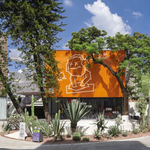 Wutopia Lab was commissioned by the digital fashion brand ifanr to create the "Popped Orange — Uhub HOUSE" in Guangzhou T.I.T Creative Park, which was completed and opened in August 2022. It is an open design experiment, a vertical micro social complex with a light tower as the hub, including coffee, bar, theater, exhibition, sightseeing and party, by ifanr and Wutopia Lab, called KEEP PATCHING, an urban community and lifestyle renewal activity. It is also the first Guangzhou model of Wutopia Lab's urban micro space revitalization program since 2015.
