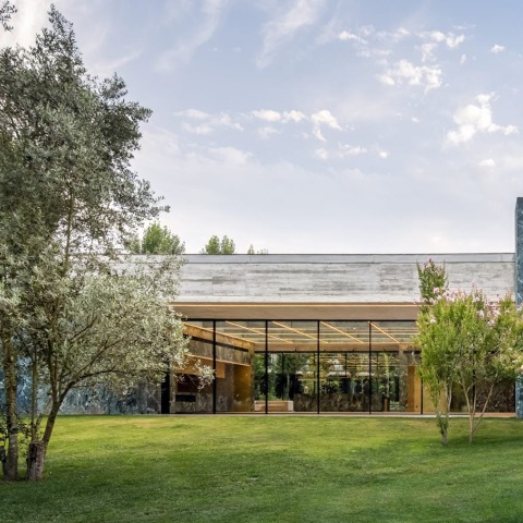 In this project by Spaceworkers, where each compositional element contributes to the functionality and beauty of the space, it is the two closed blocks that house the main programmatic functions of services and support for the guests. These, together with the apparently heavy concrete cover, defy gravity by balancing themselves in such a way that geometry plays a leading role and where, by incorporating the sky into the architecture, they obtain a transcendental dimension.