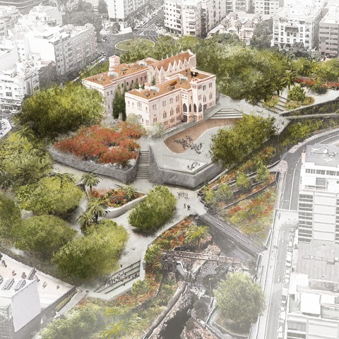 The remodelling project proposed by Menis, which won the public tender called in 2019 by the City Council of Santa Cruz de Tenerife, is based on respect for the pre-existence, both the neo-Gothic architecture and the surrounding nature, taking into account, however, the brief who asked for underground parking lots.