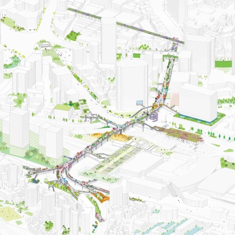 Program.- Transformation of 938 metre section of elevated highway (9.661 m2) into public space.
