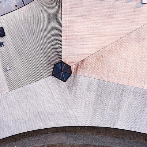 Snøhetta designed a low building that sits in the landscape and has proportions that harmonize with the surrounding hills and heights with no sharp angles breaking with the organic forms. The four façades of the building are related in different ways to the landscape spaces around it.