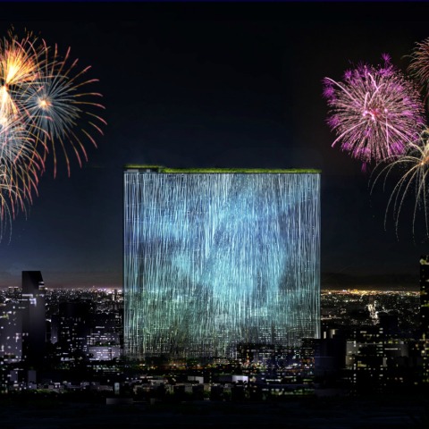 Adjacent to cultural districts, the program will consist of museum and exhibition spaces. visitors circulate upwards via an elevator placed within the acute point of the triangulated footprint. The facades contain LED lights which create an airy and hazy effect which changes in color and intensity. The exterior transitions into a sleeping state creating a starry illumination which evokes a similar effect of chinese lanterns.