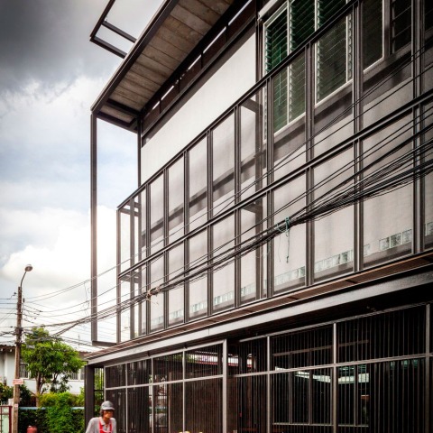 Situated on the heart of Bangkok, where the limitations of land use is the primary concern, ‘Tin Man’ is a 3-story house designed to achieve the space-saving idea under the 6 meter-span of structural steel. The name ‘Tin Man’ derives from the owner’s favorite character of the tin man or the tin woodman, a character that simply represent a humble, honest heart in the fictional ‘The Wonderful Wizard of Oz,’ created by American author L. Frank Baum.