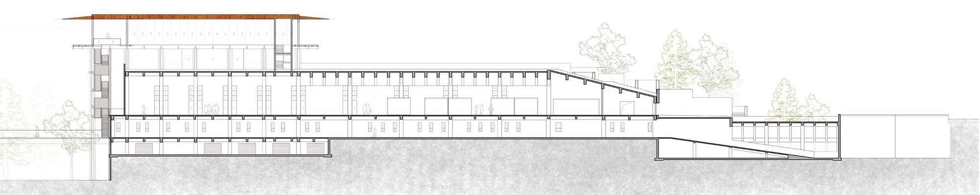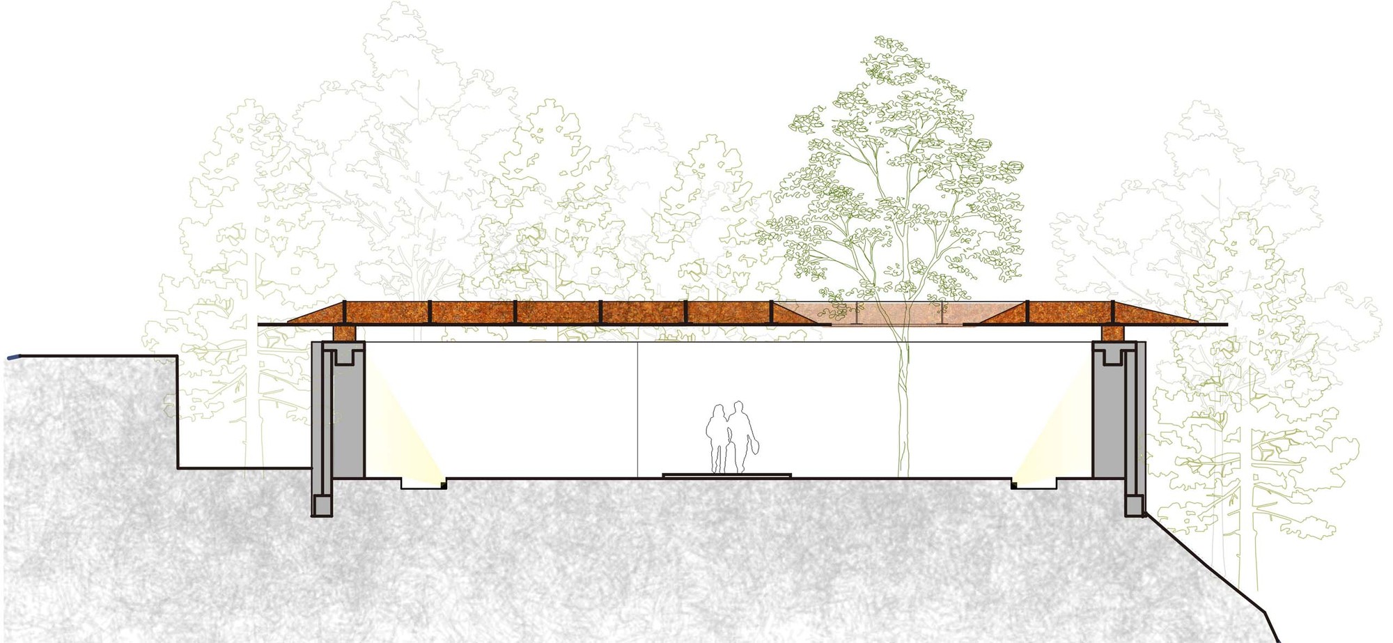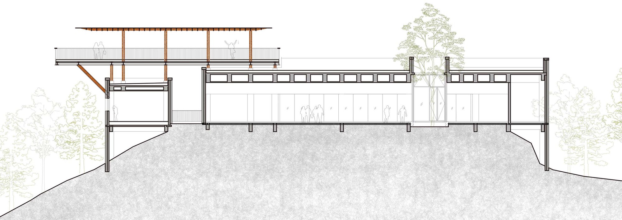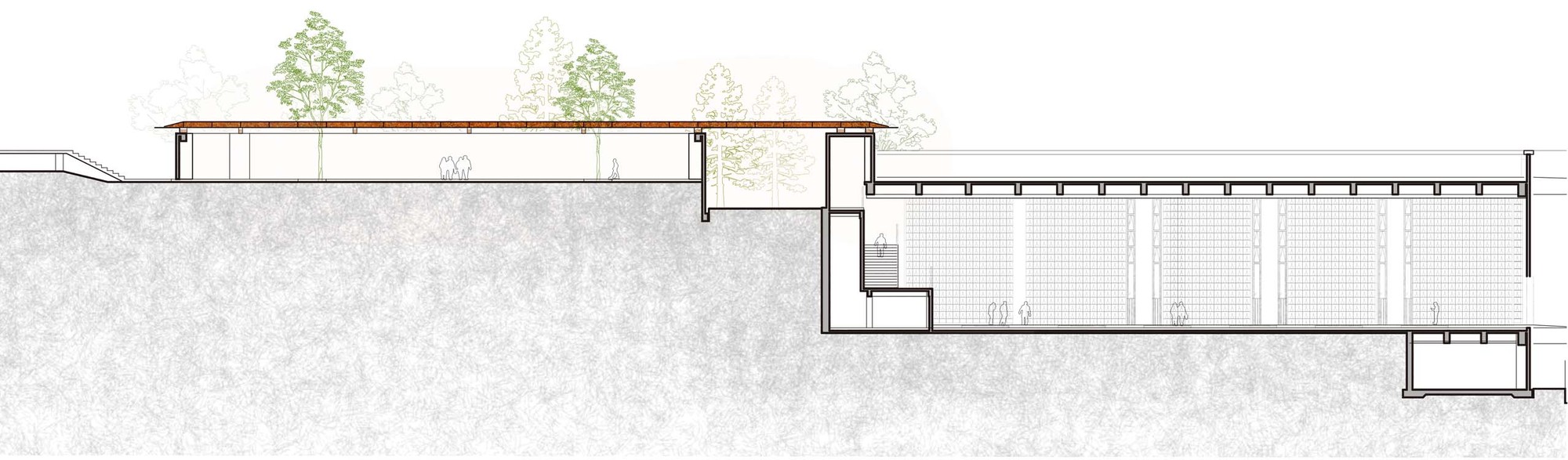 The project is interwoven in two characteristics, SEDIMENT, and FLOATING, being integrated into the mountain and tripping in the landscape.