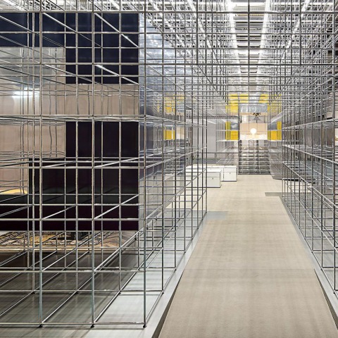 UNStudio’s Futures team was commissioned to explore changes taking place within the world of work, understand how these affect USM and identify opportunities for the future. As a result, this year's USM stand brings furniture design to an architectural scale, creating the biggest piece of USM modular furniture ever built: 1,015 panels, 5,008 balls, 13,318 tubes and 8.9 tons of material are assembled to create a space hosting a variety of themed rooms.
