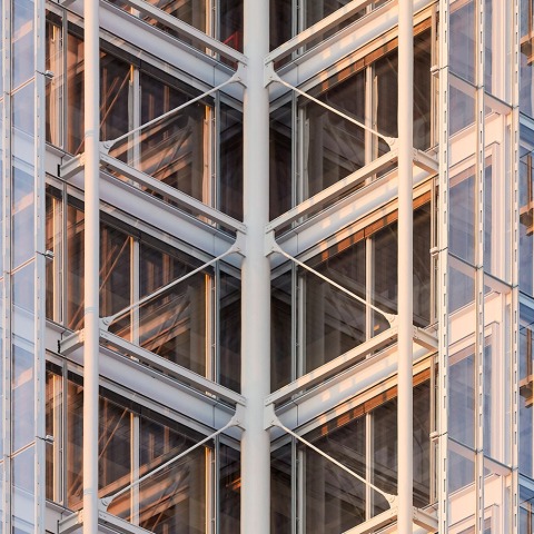 The corners fold inwards generating one of the typical details that lighten Piano's volumes, making the façade glazing project slightly beyond the volume. In the northwest corner, two panoramic elevators with their movements and flows vertically energize the façade, providing independent access to the terrace, which is scheduled to open in 2025.