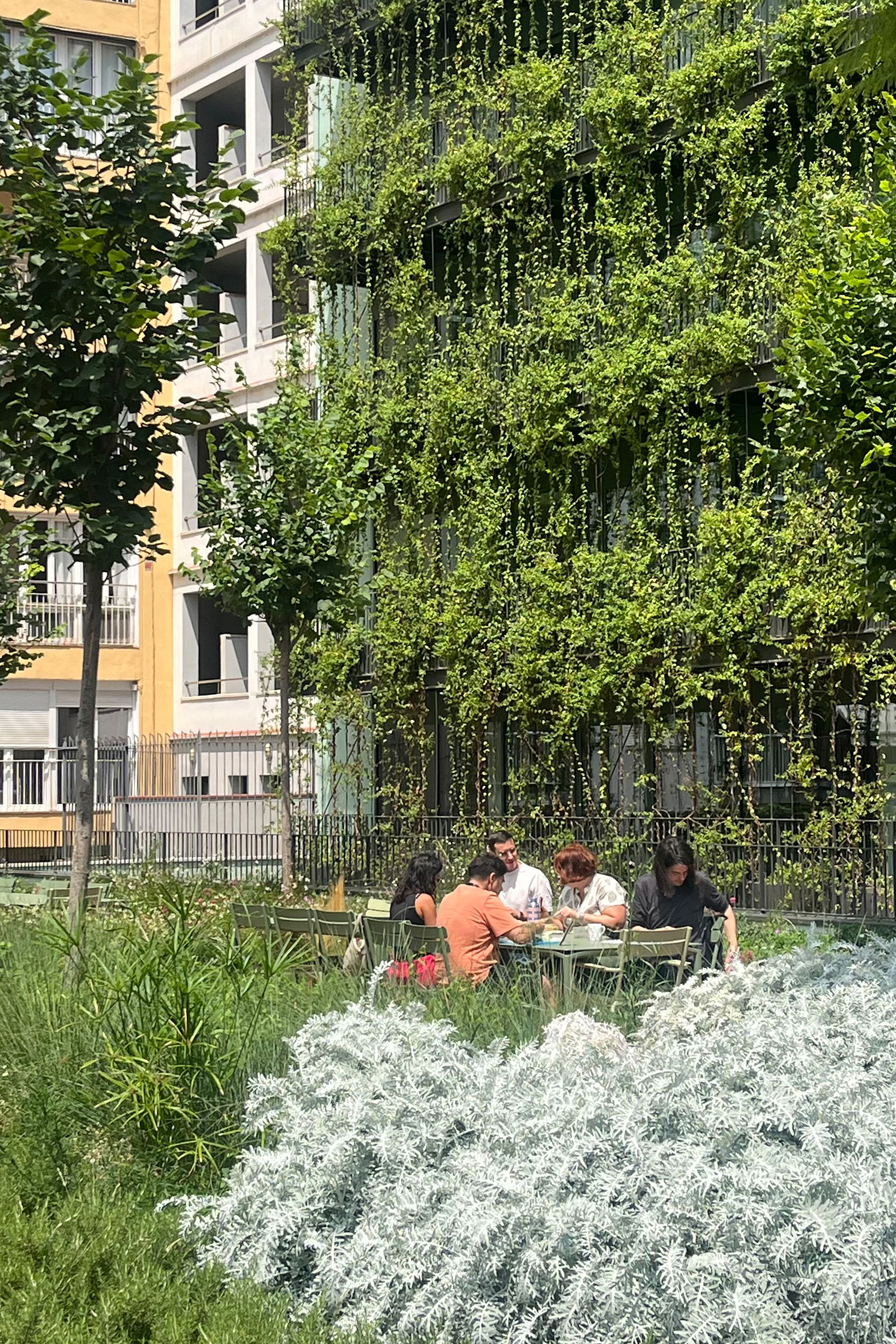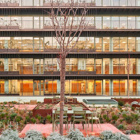 To this end, vegetation has also been planted on terraces and in the 1,000 m² courtyard. The new outdoor spaces, designed for work or leisure activities, include immersive green areas with more than 5,000 plants and 16 trees, as well as a small garden for the residents.