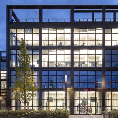 In the era of agile teams and working from home, the building complex provides maximum flexibility: The structure and location of the development cores makes it possible to alter the layout of the floors by placing modules individually or linking them together. Thanks to this versatility, iCampus Rhenania can accommodate businesses of varying sizes and with different requirements in respect of their office layout. A striking example of environmental sustainability and innovative engineering are the component-activated ceiling elements supplied by Innogration, which effectively provide the rooms with district heating and cooling.