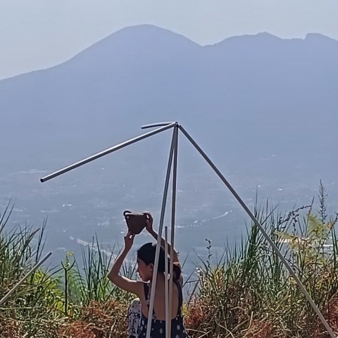 The artistic intervention «Temporary Theater - Vesuvius» created in 2024 on Mount Somma in Palma Campania, a mountain located opposite Vesuvius, is part of a broader series of artistic and performative interventions, always involving local residents of various volcanic locations such as Etna, the Aeolian Islands, Greece, the Catalan volcanic deposit near Girona, the Roman Castles (Lago Albano and Lago di Nemi - Speculum Dianae), and it will continue in the Balearic Islands, Iceland, and the Canary Islands, providing a comprehensive overview of volcanic sites of great significance with the 'spatiality of dwelling' in a context where confrontation with nature reigns supreme. This intervention poses the age-old question of who we are in the face of the volcano's eternity.
