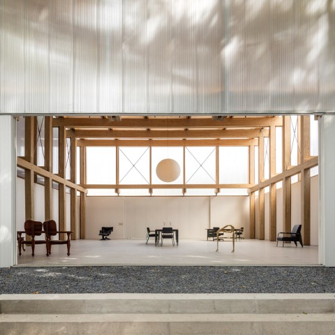 Brazilian architecture firm Studio MK27, in São Paulo, rised a pavilion using a timber structural system, and materials as polycarbonate panels, white metal sheets to form a retail space, an exhibition gallery, a single open space that completes the existing furniture store complex for Micasa, a contemporary furniture retailer based in São Paulo.