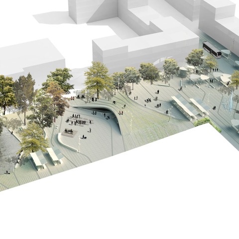 MX_SI and MestresWåge's proposal for Trygve Lies square, of about 5,200 sqm and located in the heart of Furuset, a suburban area of Oslo, turns around the current conditions of the square (little permeability, invasion of its area by the parking area, dispersed access to subway and bus stops). The winning project seeks to answer two clear objectives: a social one to generate a new centrality for the development of urban, economic, cultural, sportive and recreational activities in a multifunctional space; and another one clearly related to environmental solutions, whose aim is to adapt bioclimatically the outside space to different climatic conditions of the area.