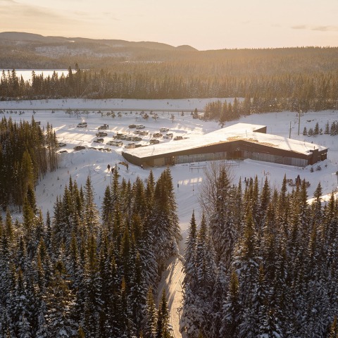 The surrounding landscape flows seamlessly into the pavilion, with vegetated embankments that allow for sliding during the winter, and a natural amphitheater with relaxation areas and outdoor fire pits. Special attention was given to the needs of ski enthusiasts, who are the primary users of the site. As a result, the new pavilion was built closer to the ski paths and oriented to offer better protection from the prevailing winds while maximizing sunlight exposure.